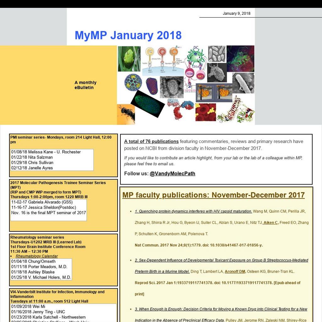 February 27, 2018 - The Division of Molecular Pathogenesis monthly faculty meeting. This will be a business meeting - 3pm, room A-5305 MCN