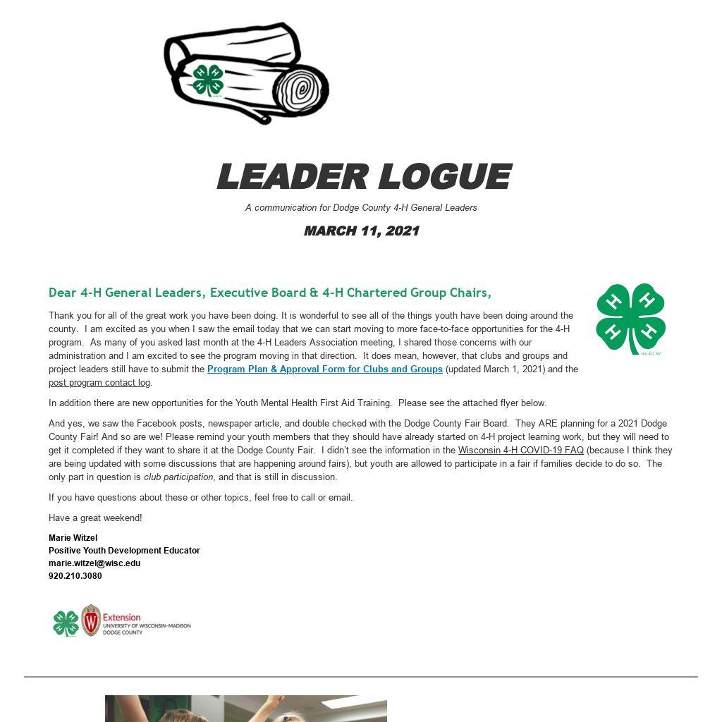 Overnight camp and university-sponsored out-of-state travel programs continue to be canceled. National 4-H meetings and events have been canceled or moved online through the end of the summer. Guidance for Wisconsin 4-H summer programs will be posted later this spring.