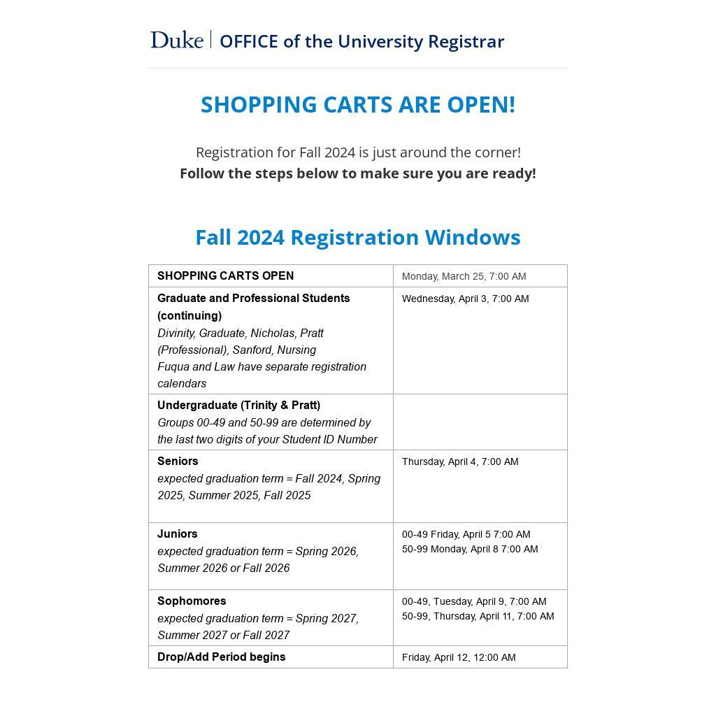 CHECK YOUR REGISTRATION WINDOWS IN DUKEHUB