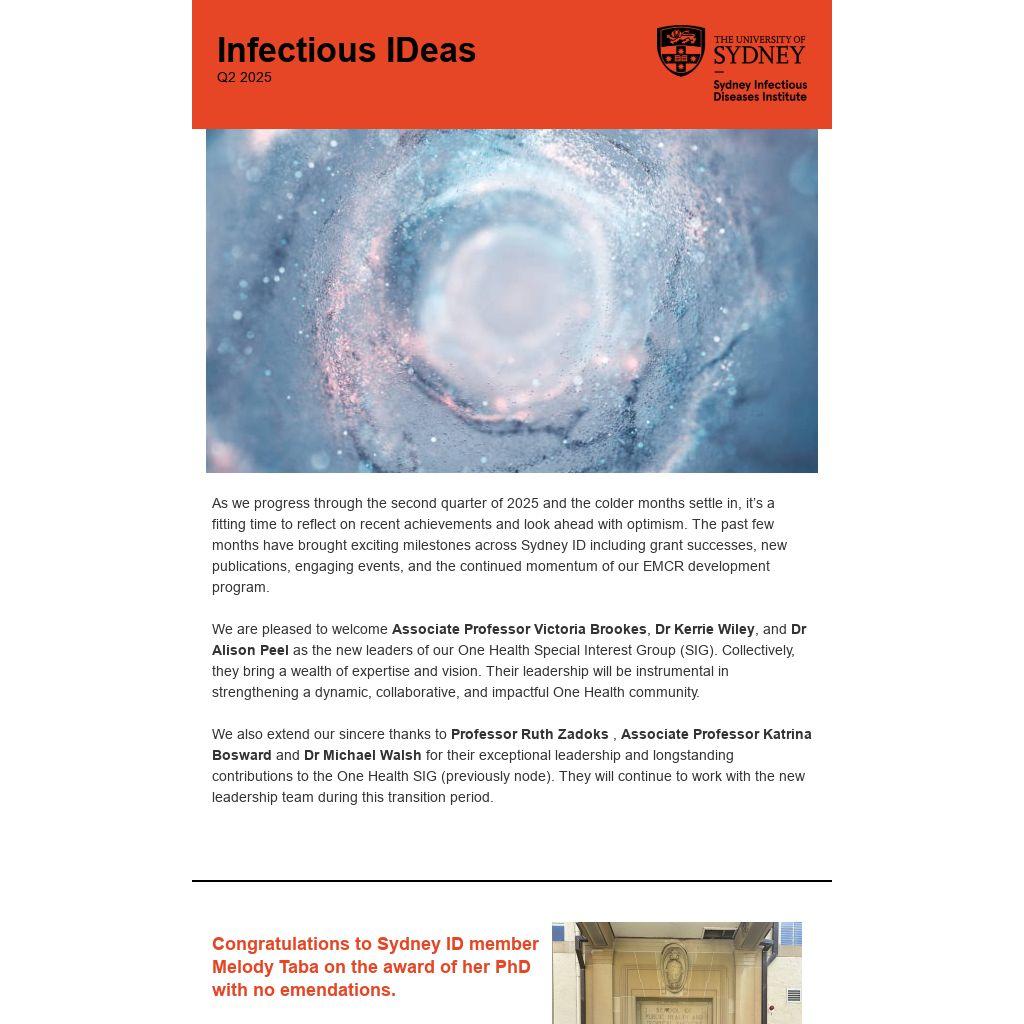 As we progress through the second quarter of 2025 and the colder months settle in, it’s a fitting time to reflect on recent achievements and look ahead with optimism. The past few months have brought exciting milestones across Sydney ID including grant successes, new publications, engaging events, and the continued momentum of our EMCR development program.