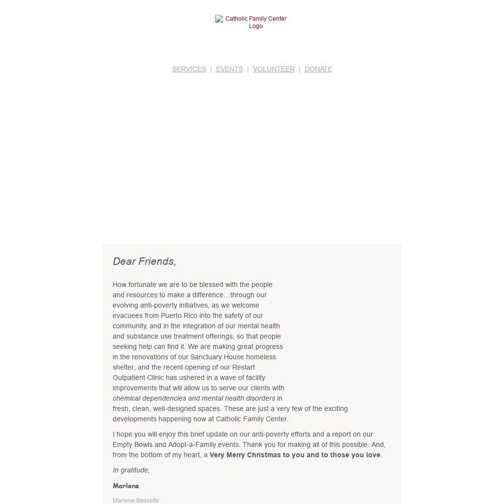 I hope you will enjoy this brief update on our anti-poverty efforts and a report on our Empty Bowls and Adopt-a-Family events. Thank you for making all of this possible. And, from the bottom of my heart, a Very Merry Christmas to you and to those you love.