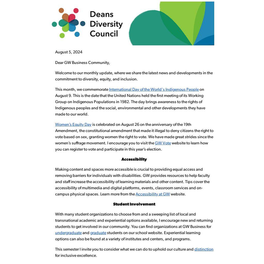 Dear GW Business Community,