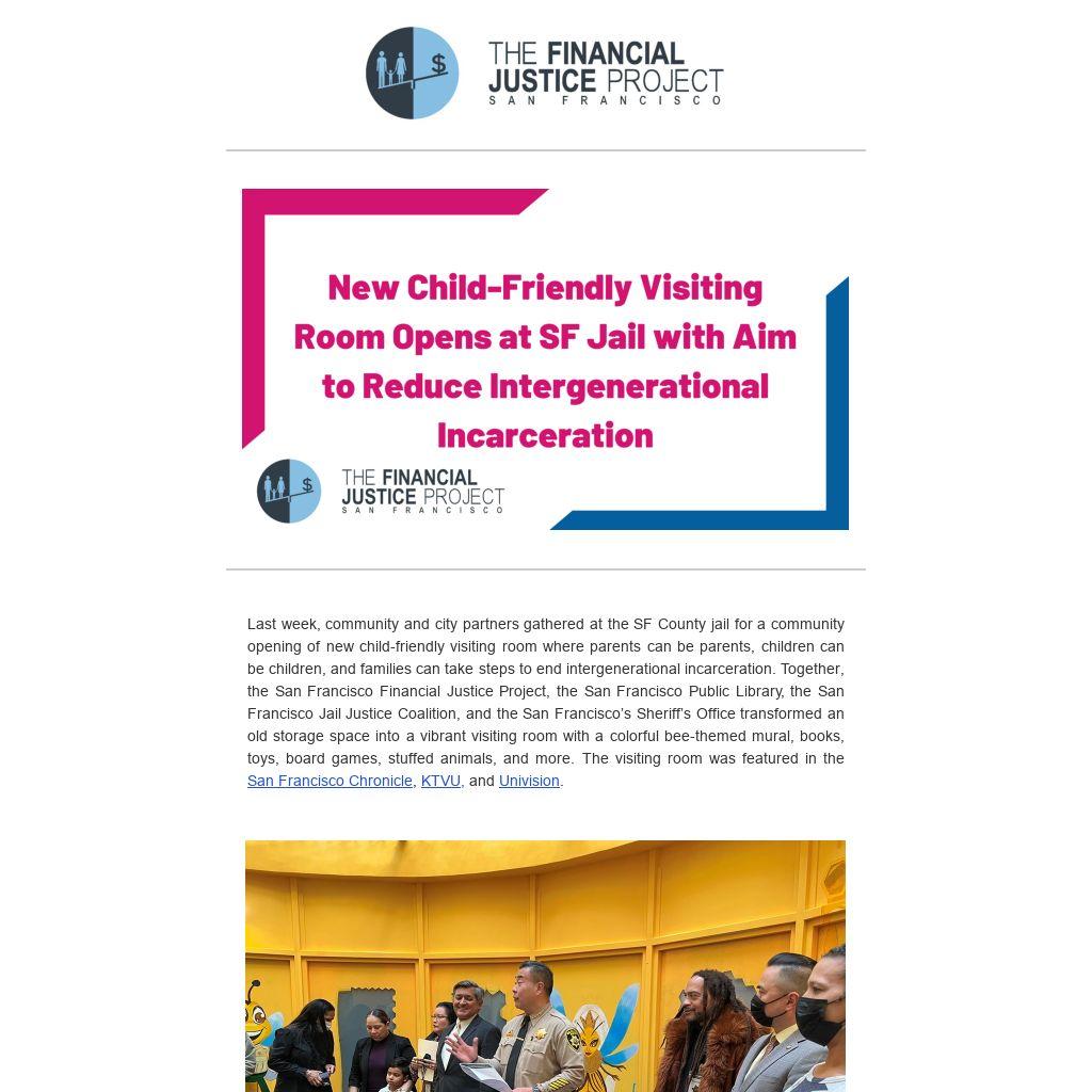 Thank you to all of our partners, including community organizations in the San Francisco Jail Justice Coalition, the San Francisco Public Library, the Harry Potter Cursed Child Production who donated furniture and rugs for the room, the One Family Program, and the San Francisco’s Sheriff’s Office.