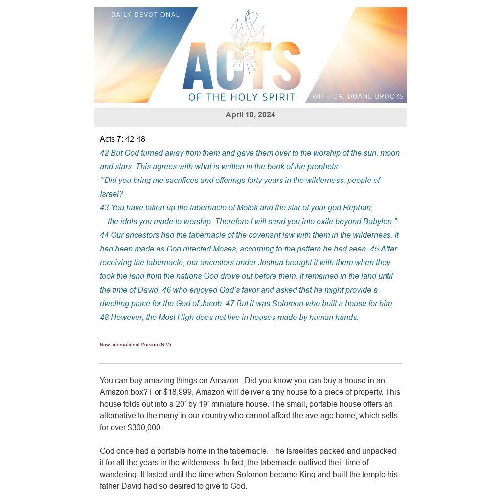God once had a portable home in the tabernacle. The Israelites packed and unpacked it for all the years in the wilderness. In fact, the tabernacle outlived their time of wandering. It lasted until the time when Solomon became King and built the temple his father David had so desired to give to God.
