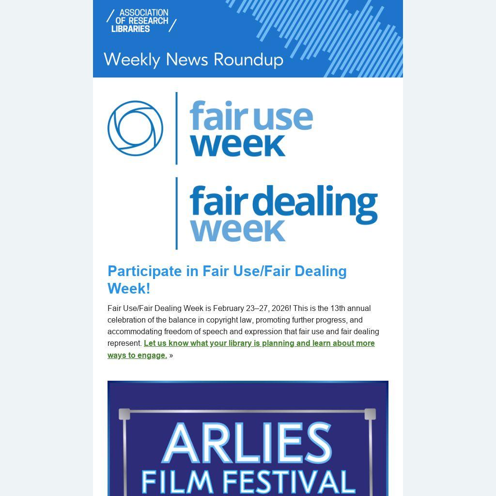 The 11th Annual ARLIES Film Festival is accepting submissions from ARL member libraries through April 1—no joke! 🤣 The ARLIES (pronounced R-LEEZ) is juried by ARL member representatives and culminates in a showing of selected original videos by member libraries. Learn how to submit an entry and/or host a live watch party. »