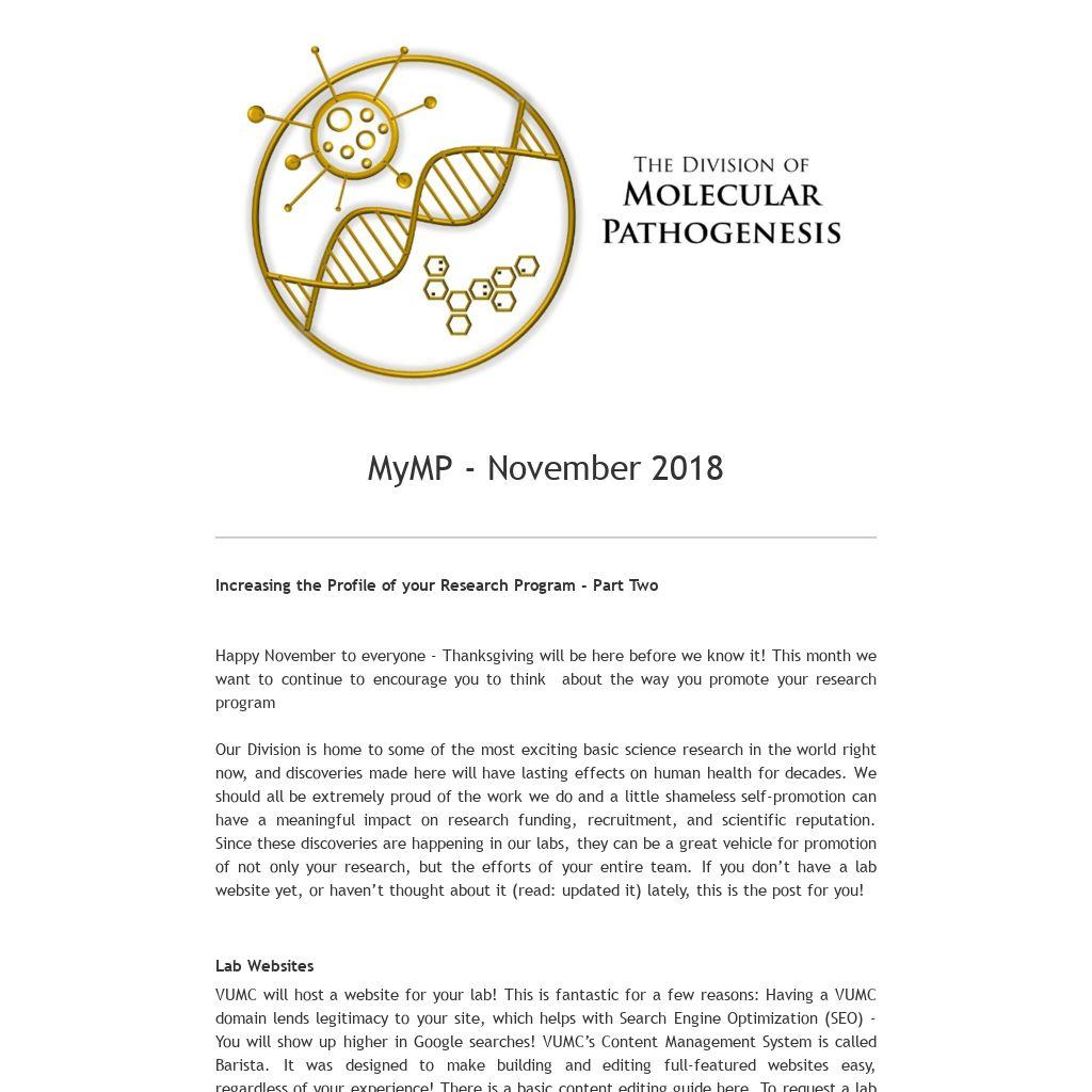 Happy November to everyone - Thanksgiving will be here before we know it! This month we want to continue to encourage you to think about the way you promote your research program