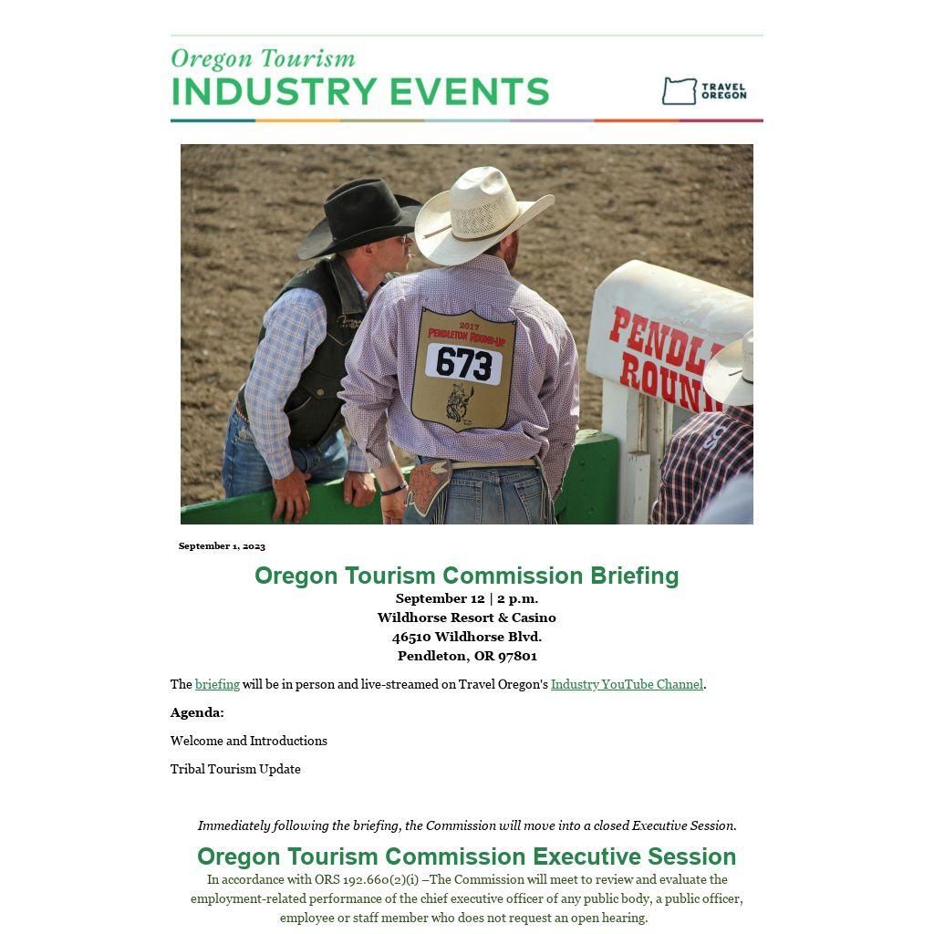 If you have any questions or comments related to today’s proceedings or presentations, email industry@traveloregon.com and indicate "September 2023 Tourism Commission Meeting” in the subject line.