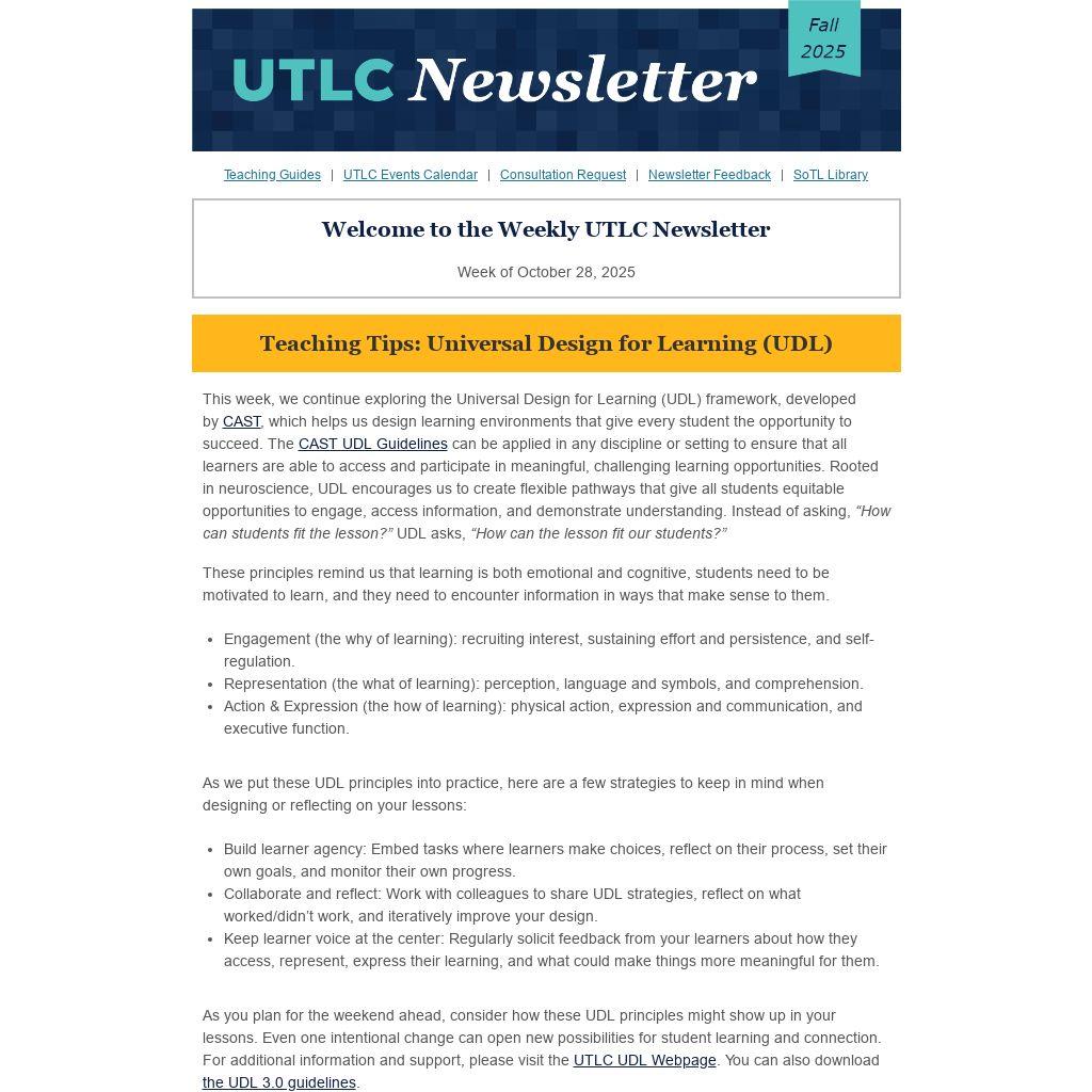 Welcome to the Weekly UTLC Newsletter |