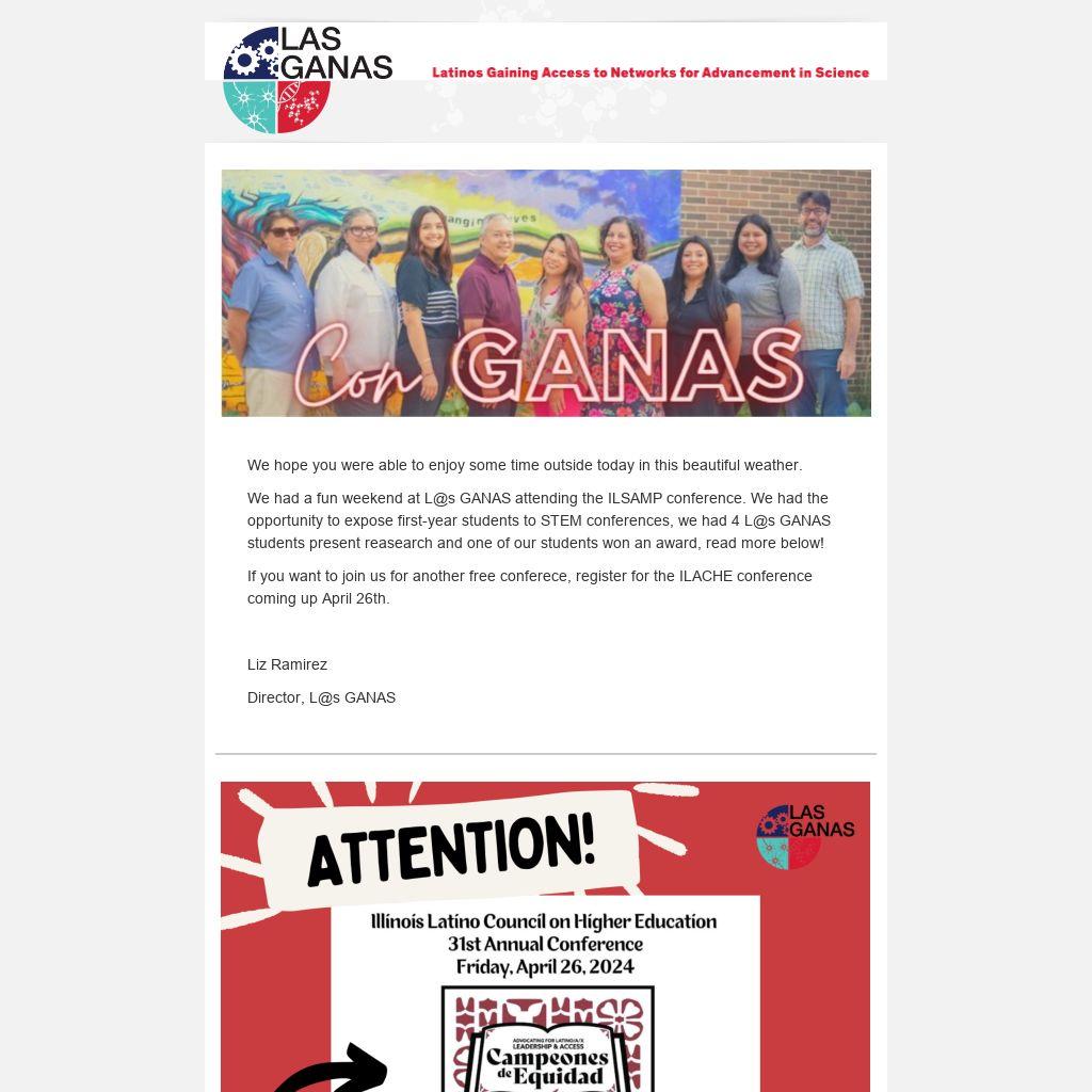 We had a fun weekend at L@s GANAS attending the ILSAMP conference. We had the opportunity to expose first-year students to STEM conferences, we had 4 L@s GANAS students present reasearch and one of our students won an award, read more below!