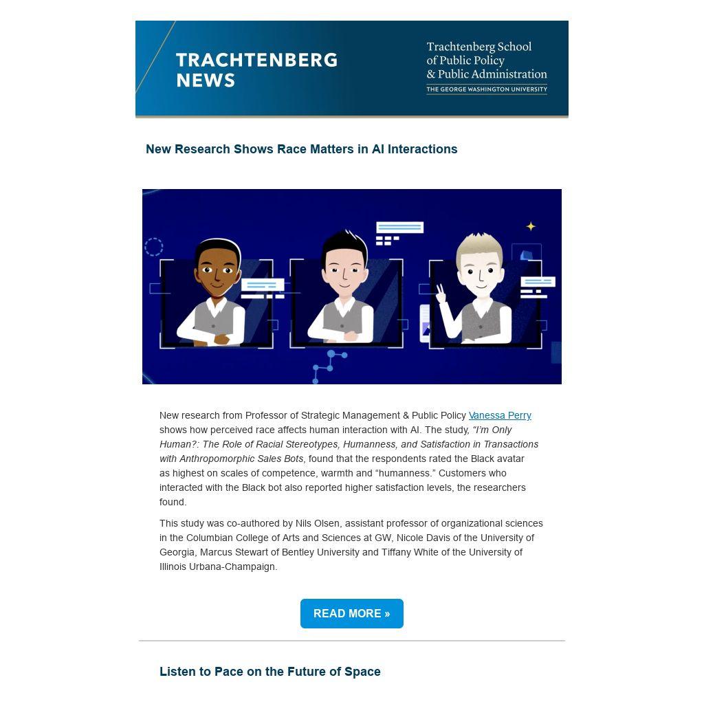 New research from Professor of Strategic Management & Public Policy Vanessa Perry shows how perceived race affects human interaction with AI. The study, “I’m Only Human?: The Role of Racial Stereotypes, Humanness, and Satisfaction in Transactions with Anthropomorphic Sales Bots, found that the respondents rated the Black avatar as highest on scales of competence, warmth and “humanness.” Customers who interacted with the Black bot also reported higher satisfaction levels, the researchers found.