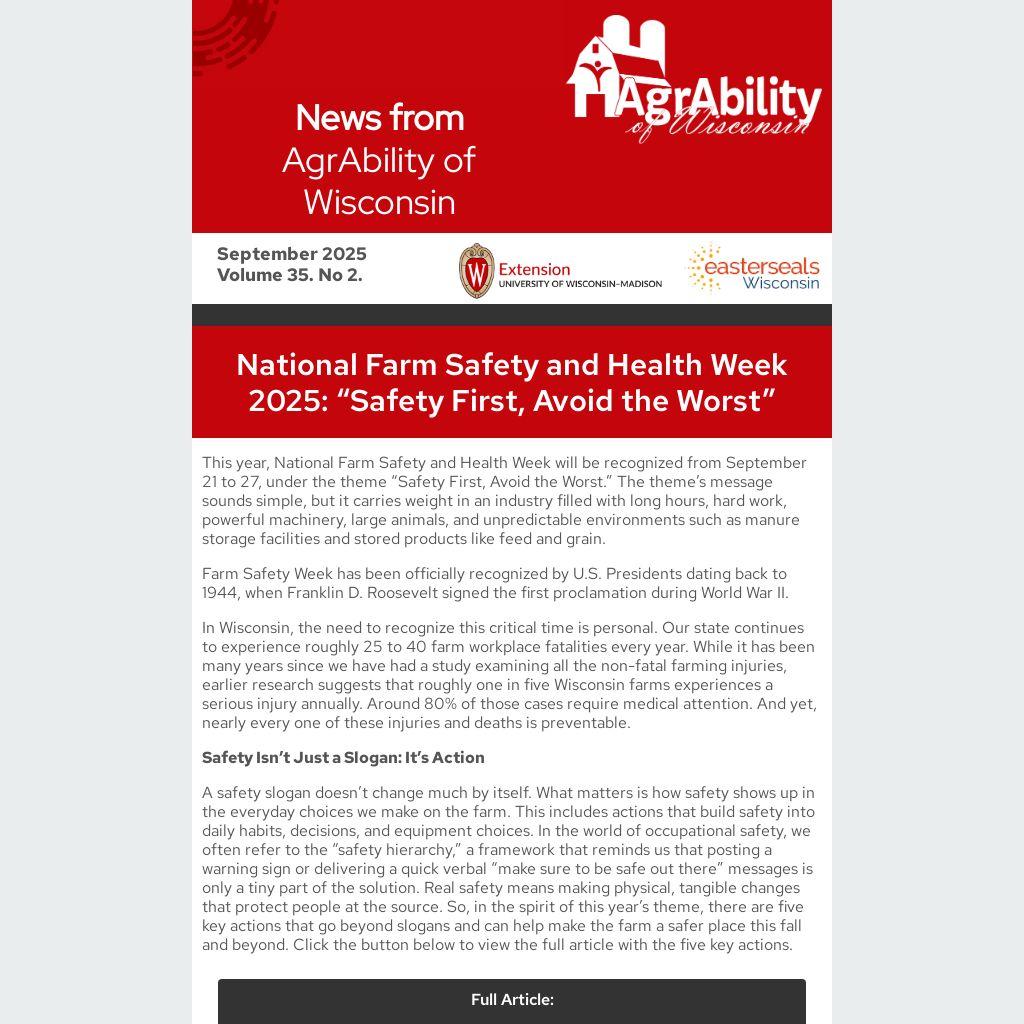 National Farm Safety and Health Week 2025: “Safety First, Avoid the Worst” |