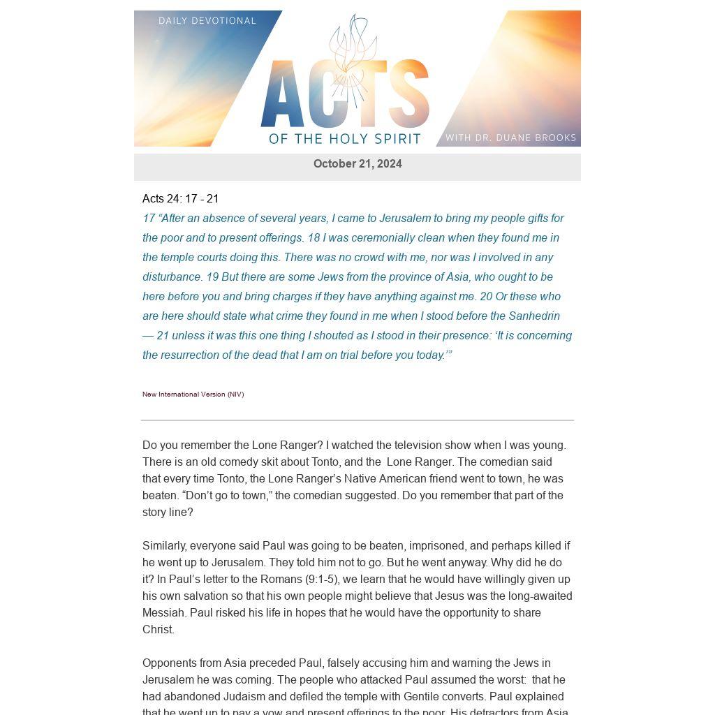 Paul saw this moment as another opportunity to proclaim the good news. Once again, he preached the resurrection as the reason for the riot and his ensuing imprisonment. The apostle never missed a chance to speak up for Jesus.