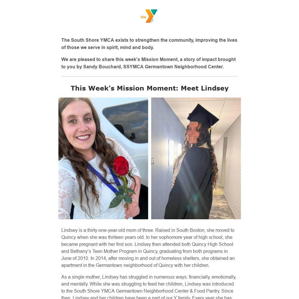 Watching Lindsey persevere and grow since she first moved to the Germantown neighborhood has been an honor. She is a hardworking, caring person who has pushed through adversity to meet her goals. Her story is an example of how the work we do at the Y and our Germantown Neighborhood Center helps local families work toward their dreams.