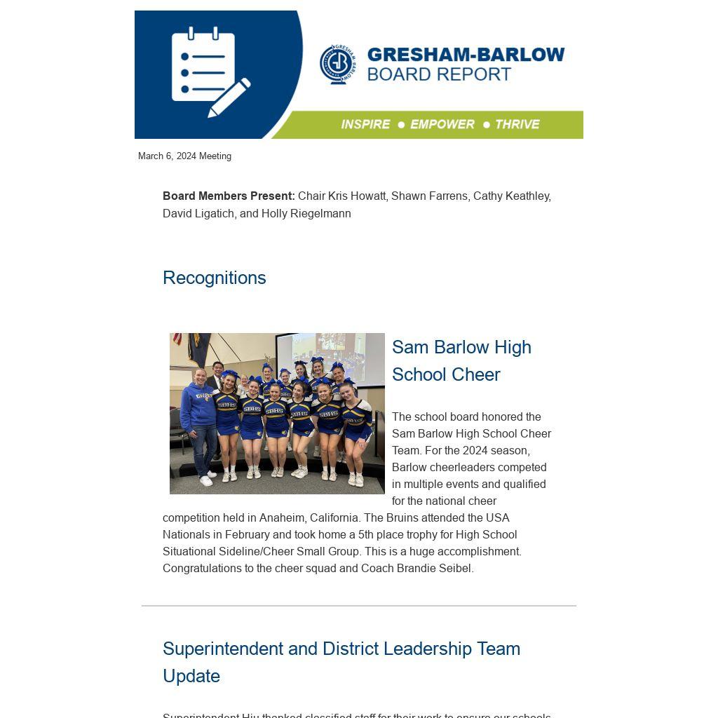APPROVED, accepting the recommendation to appoint Dan Corcoran to Position 4 on the Gresham-Barlow School District Budget Committee