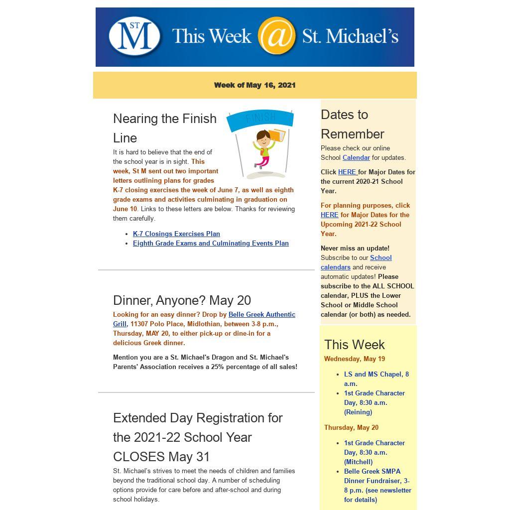 Current and past issues of "This Week at St. Michael's" are now archived on our website under "News and Events," as well as under "Community."
