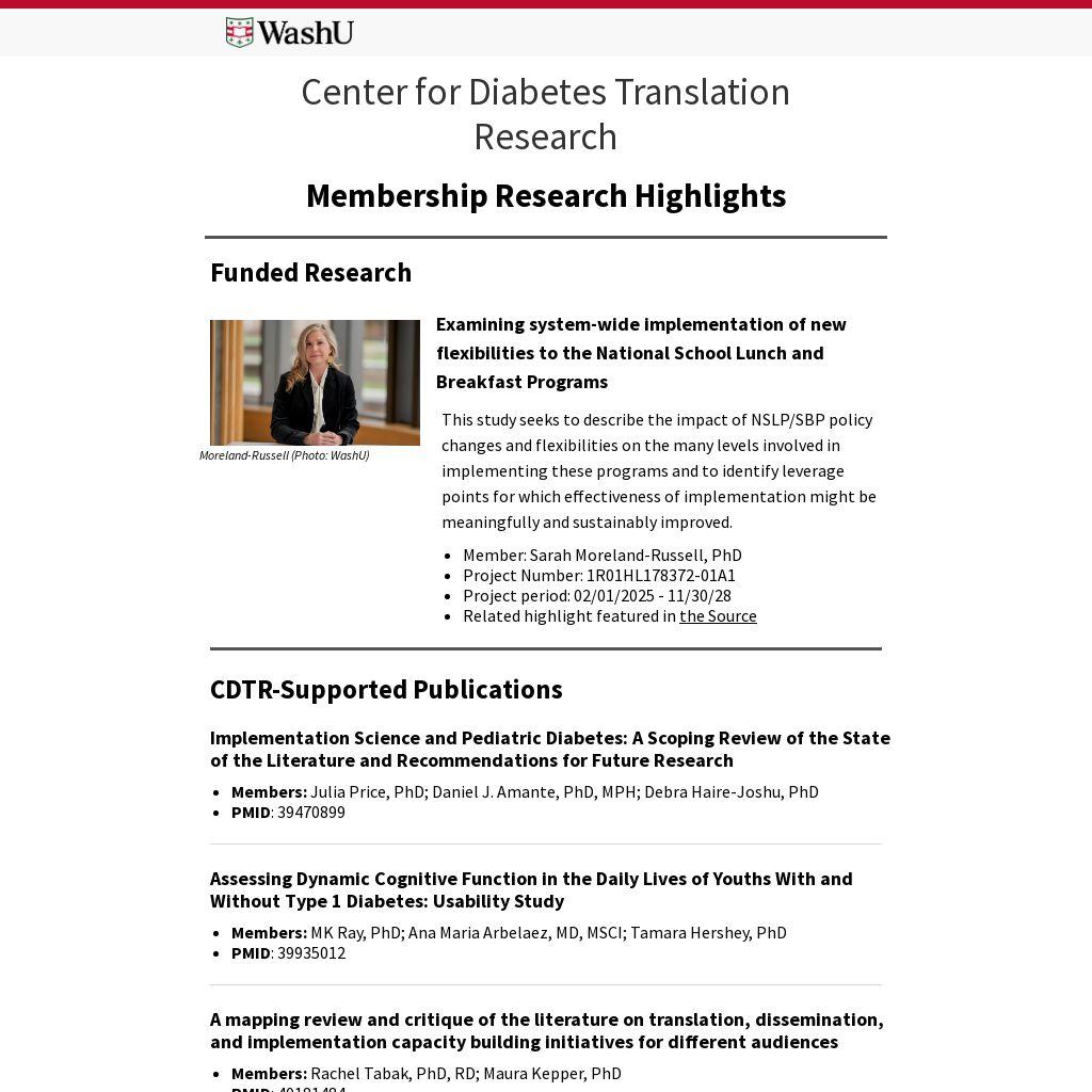 The Washington University Center for Diabetes Translation Research is supported by a grant from the National Institute of Diabetes and Digestive and Kidney Disorders, P30DK092950. Visit our to learn more about citing the CDTR.