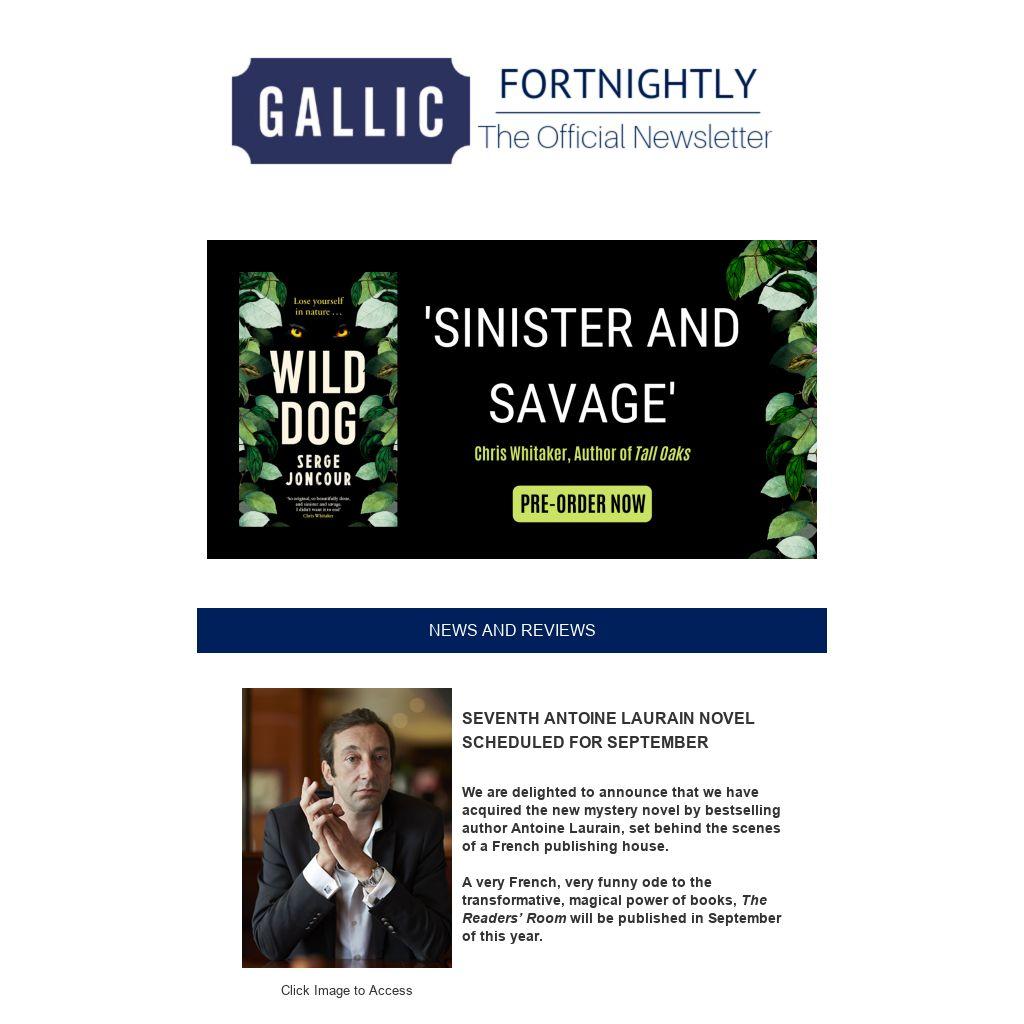 SEVENTH ANTOINE LAURAIN NOVEL SCHEDULED FOR SEPTEMBER