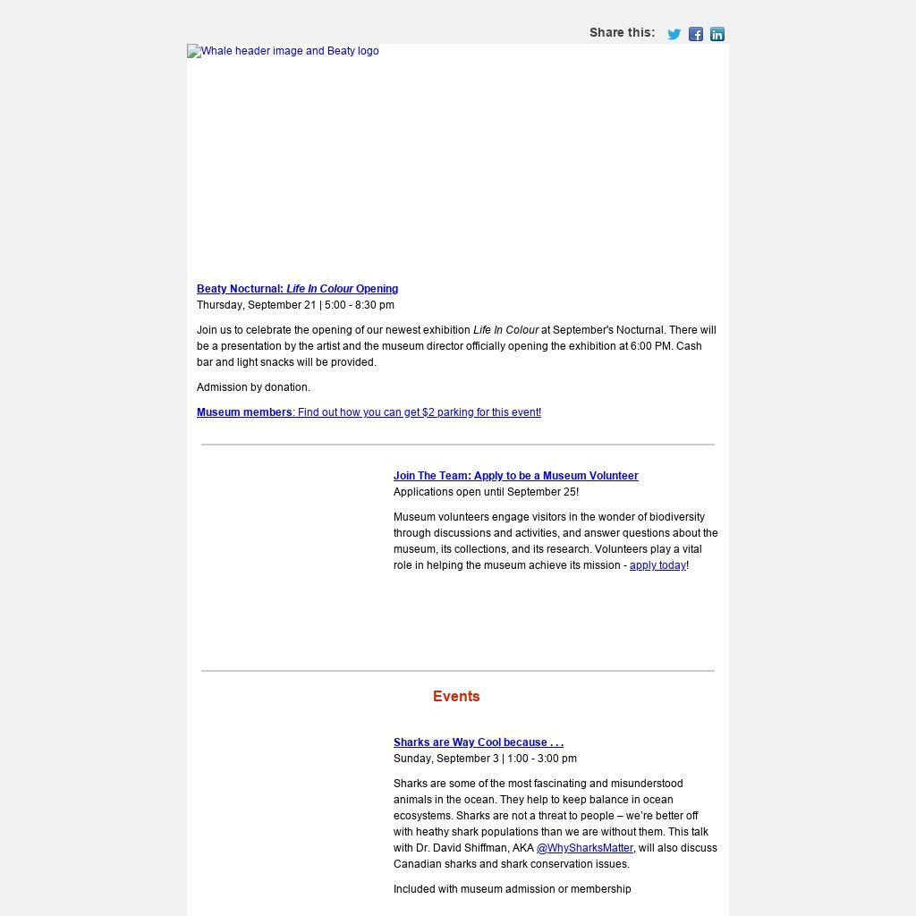 The Beaty Biodiversity Museum strives to inspire an understanding of biodiversity, its origins, and importance to humans through collections-based research, education, and outreach.