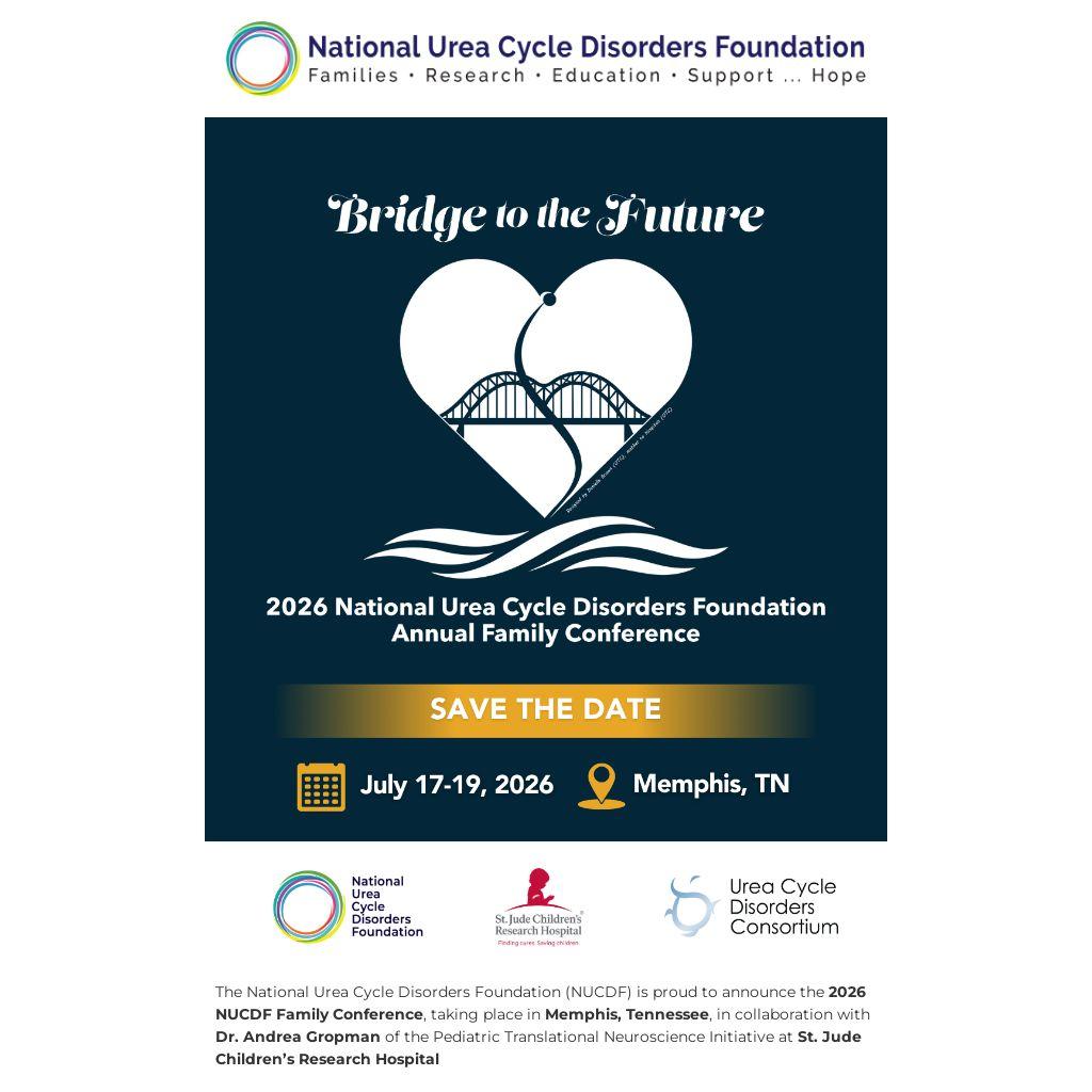 The National Urea Cycle Disorders Foundation (NUCDF) is proud to announce the 2026 NUCDF Family Conference, taking place in Memphis, Tennessee, in collaboration with Dr. Andrea Gropman of the Pediatric Translational Neuroscience Initiative at St. Jude Children’s Research Hospital