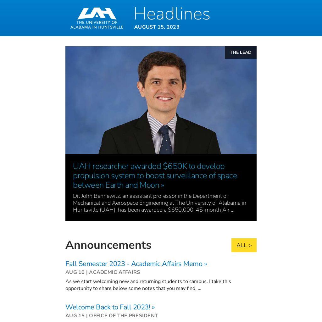 distributed weekly to all UAH faculty and staff.