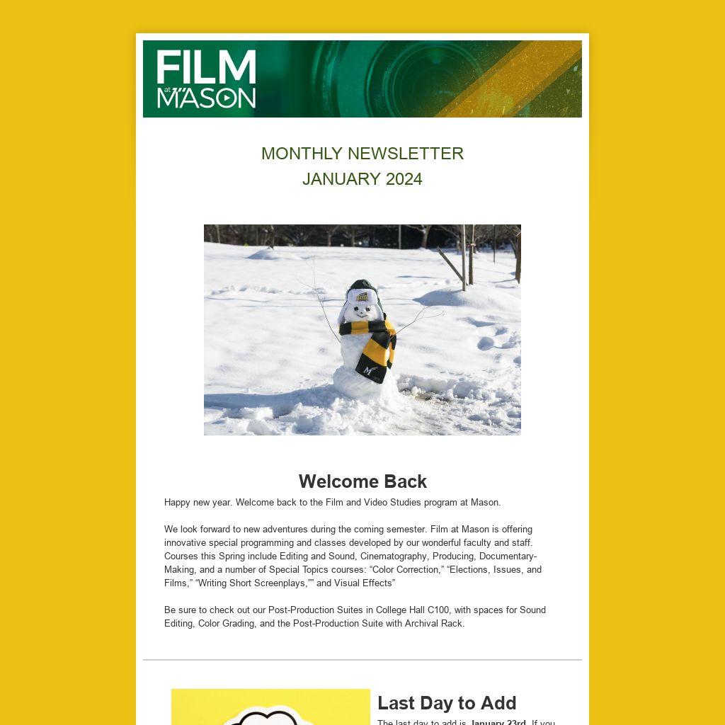 Happy new year. Welcome back to the Film and Video Studies program at Mason.