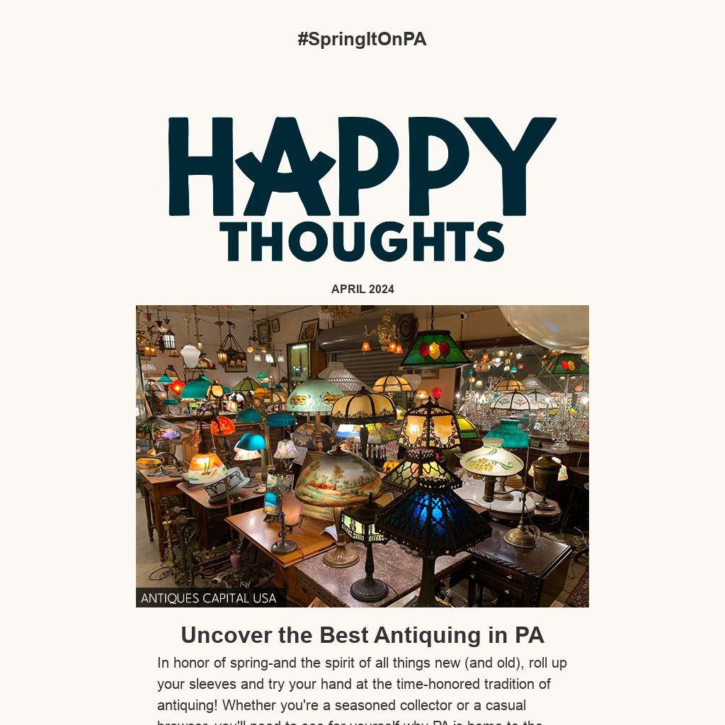 In honor of spring-and the spirit of all things new (and old), roll up your sleeves and try your hand at the time-honored tradition of antiquing! Whether you're a seasoned collector or a casual browser, you'll need to see for yourself why PA is home to the “Antique Capital of the U.S.”