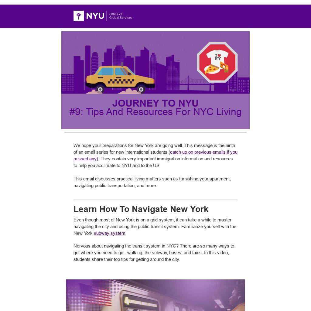 We hope your preparations for New York are going well. This message is the ninth of an email series for new international students (