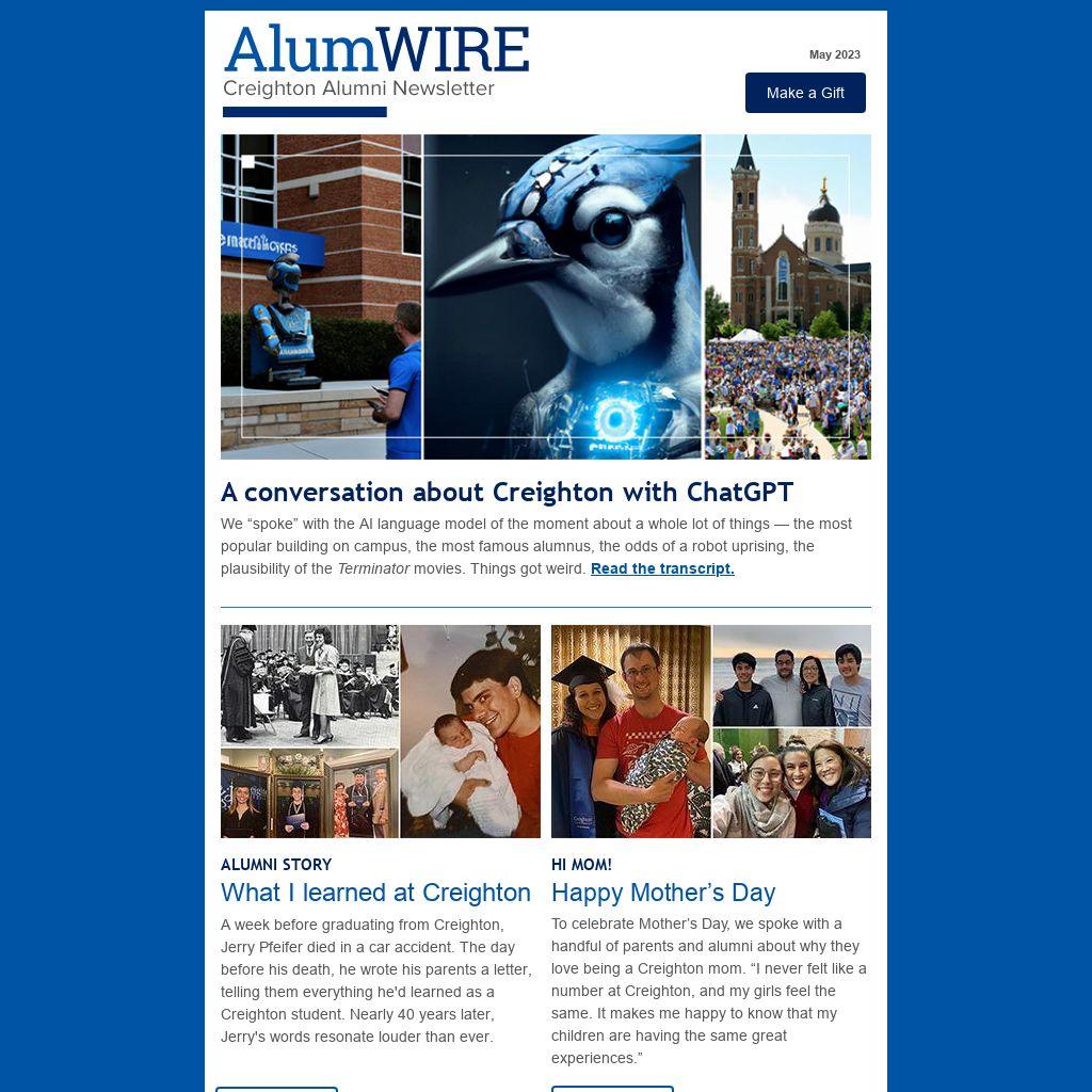 Want to get text messages and receive great new Creighton stories and other content even sooner? Sign up for the Early Bird edition. We’ll only text you twice a month, and we promise it will only be fun stuff. Sign up for the Early Bird edition today. Text 402.741.7393 and use the keyword “EarlyBird”