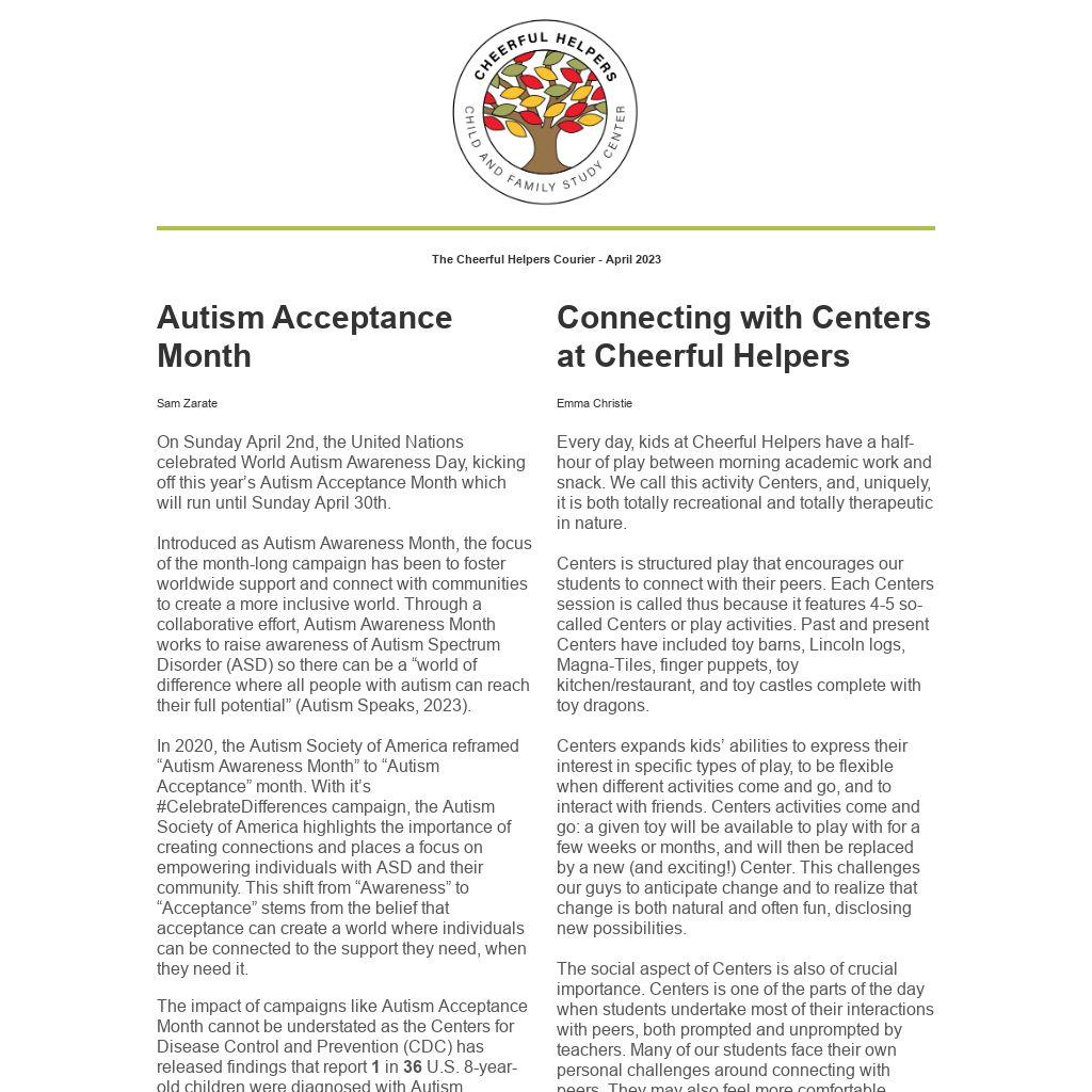At Cheerful Helpers, this month and every month we recognize that individuals with ASD are unique and we offer support, understanding, and acceptance to our kids and their families. Guided by our mission, we offer a unique and collaborative approach, empowering the entire family to achieve their potential for life-long growth.