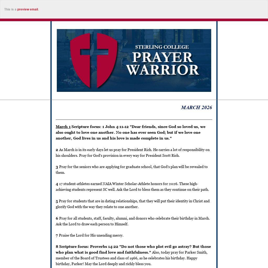 Sterling College Prayer Warrior