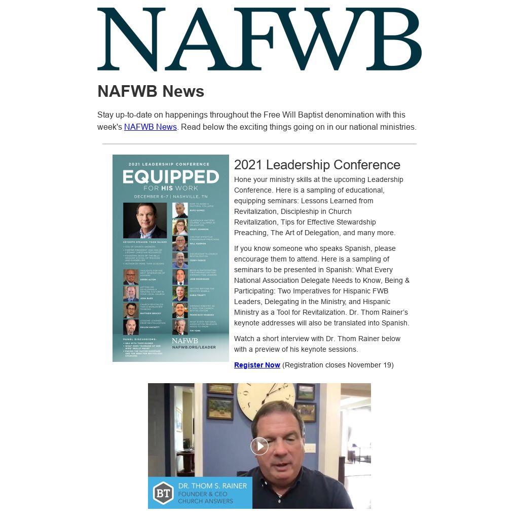 If you know someone who speaks Spanish, please encourage them to attend. Here is a sampling of seminars to be presented in Spanish: What Every National Association Delegate Needs to Know, Being & Participating: Two Imperatives for Hispanic FWB Leaders, Delegating in the Ministry, and Hispanic Ministry as a Tool for Revitalization. Dr. Thom Rainer’s keynote addresses will also be translated into Spanish.
