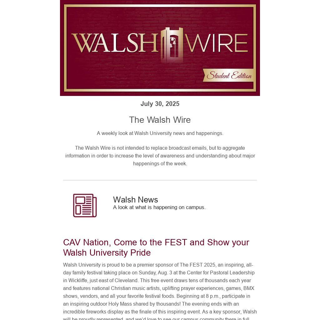 CAV Nation, Come to the FEST and Show your Walsh University Pride |