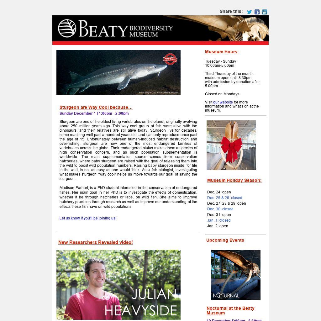 A FREE program for campus residents, these drop-in sessions are designed for children 5-12 years old accompanied by an adult (not suitable for preschool-aged children). All sessions will be held at the Beaty Biodiversity Museum, with experts from the Pacific Museum of Earth and around UBC making guest appearances.