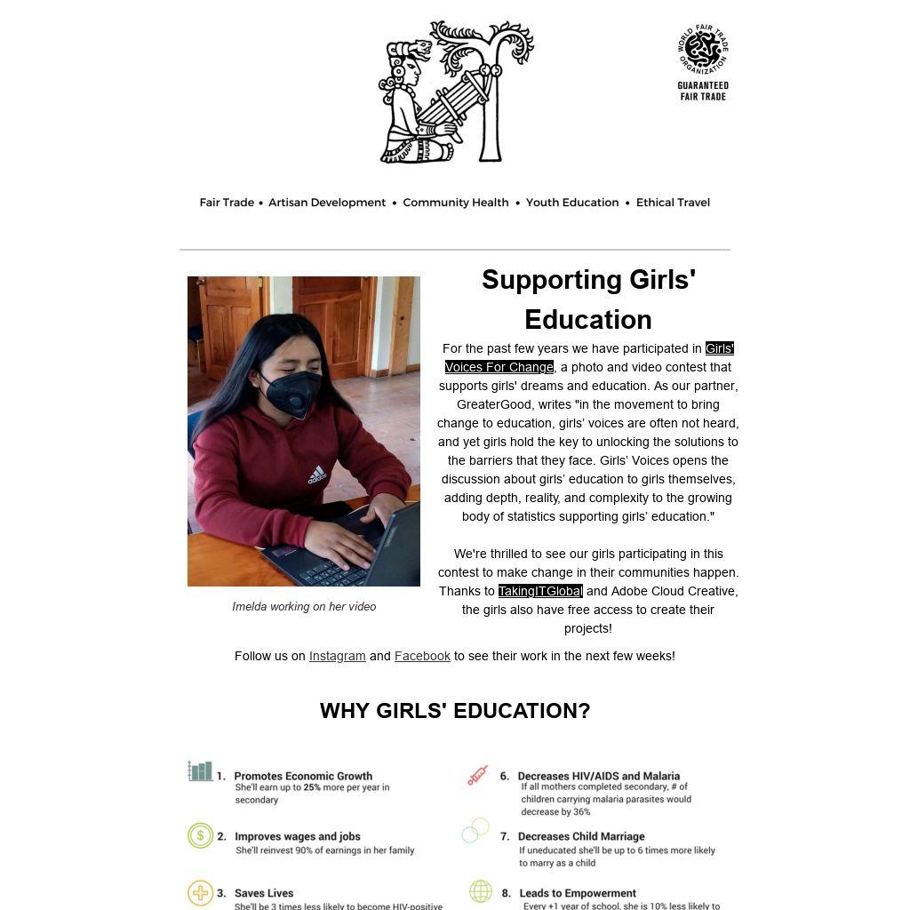 Amarilis, below left, visited the communities this month for our family garden pilot project in Quiejel, Nahualá, and Chuacruz. This project directly benefits 24 artisans and 59 children. Our artisan partners live with different relatives as well, meaning that through this project, 123 relatives benefit indirectly, including grandparents, siblings, aunts/uncles, in-laws, and other close relatives. This is a total of 206 beneficiaries!