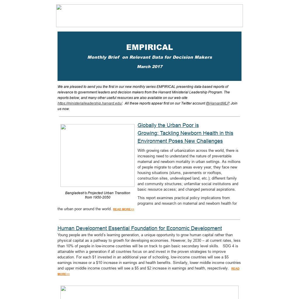 We are pleased to send you the first in our new monthly series EMPIRICAL presenting data-based reports of relevance to government leaders and decision makers from the Harvard Ministerial Leadership Program. The reports below, and many other useful resources are also available on our web-site https://ministerialleadership.harvard.edu/.  All these reports appear first on our Twitter account @HarvardMLP. Join us now.