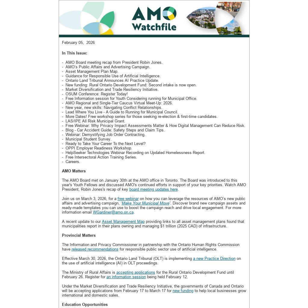 You can now register for the AMO Regional and Single Tier Caucus Virtual Meet-Up meet. Scheduled for Monday, February 23 from 10am-12noon. This interactive session provides an opportunity for questions and answers on AMO’s strategic policy and government relations priorities and approach. If you have top of mind questions, you can submit them in advance to events@amo.on.ca. Register here.