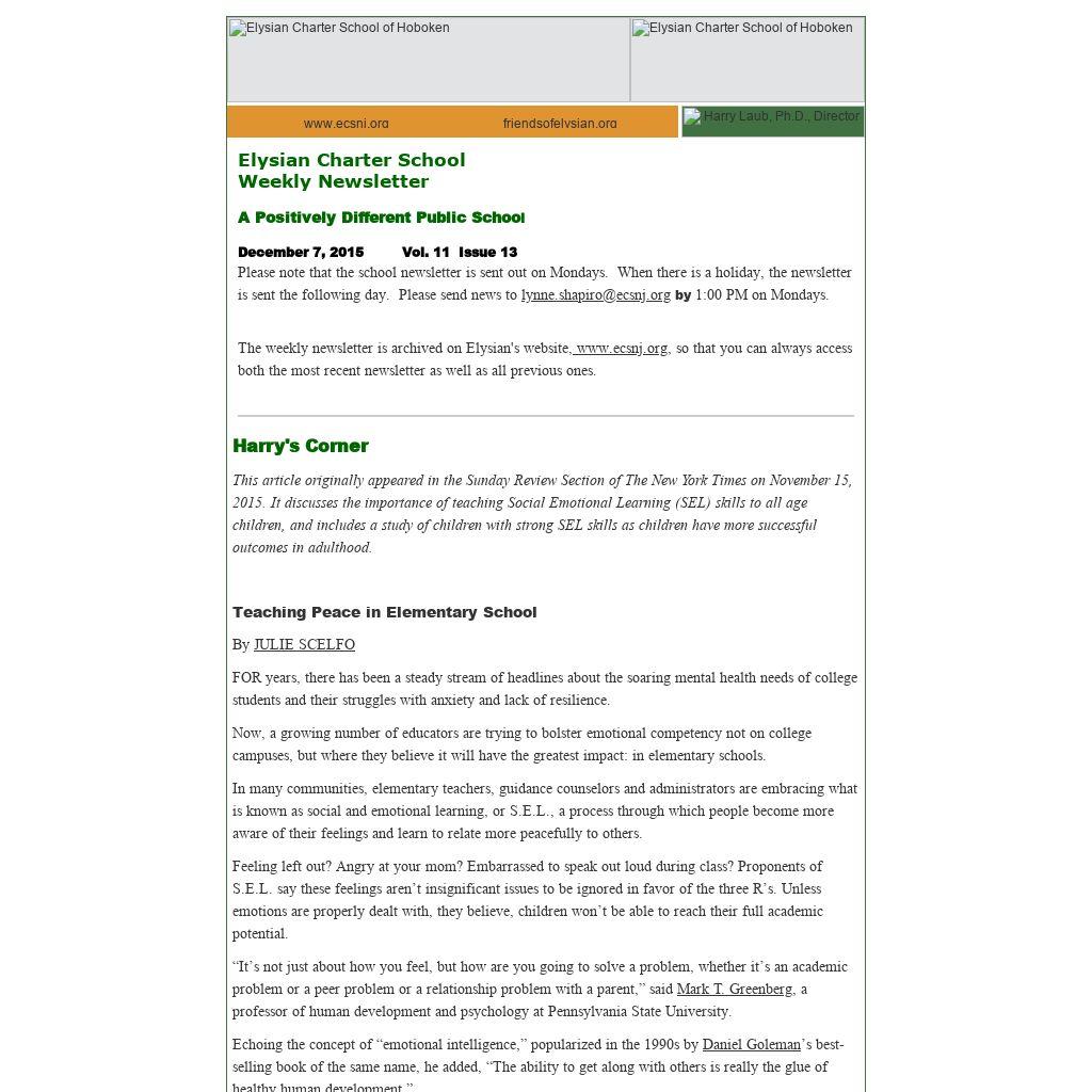 This article originally appeared in the Sunday Review Section of The New York Times on November 15, 2015. It discusses the importance of teaching Social Emotional Learning (SEL) skills to all age children, and includes a study of children with strong SEL skills as children have more successful outcomes in adulthood.