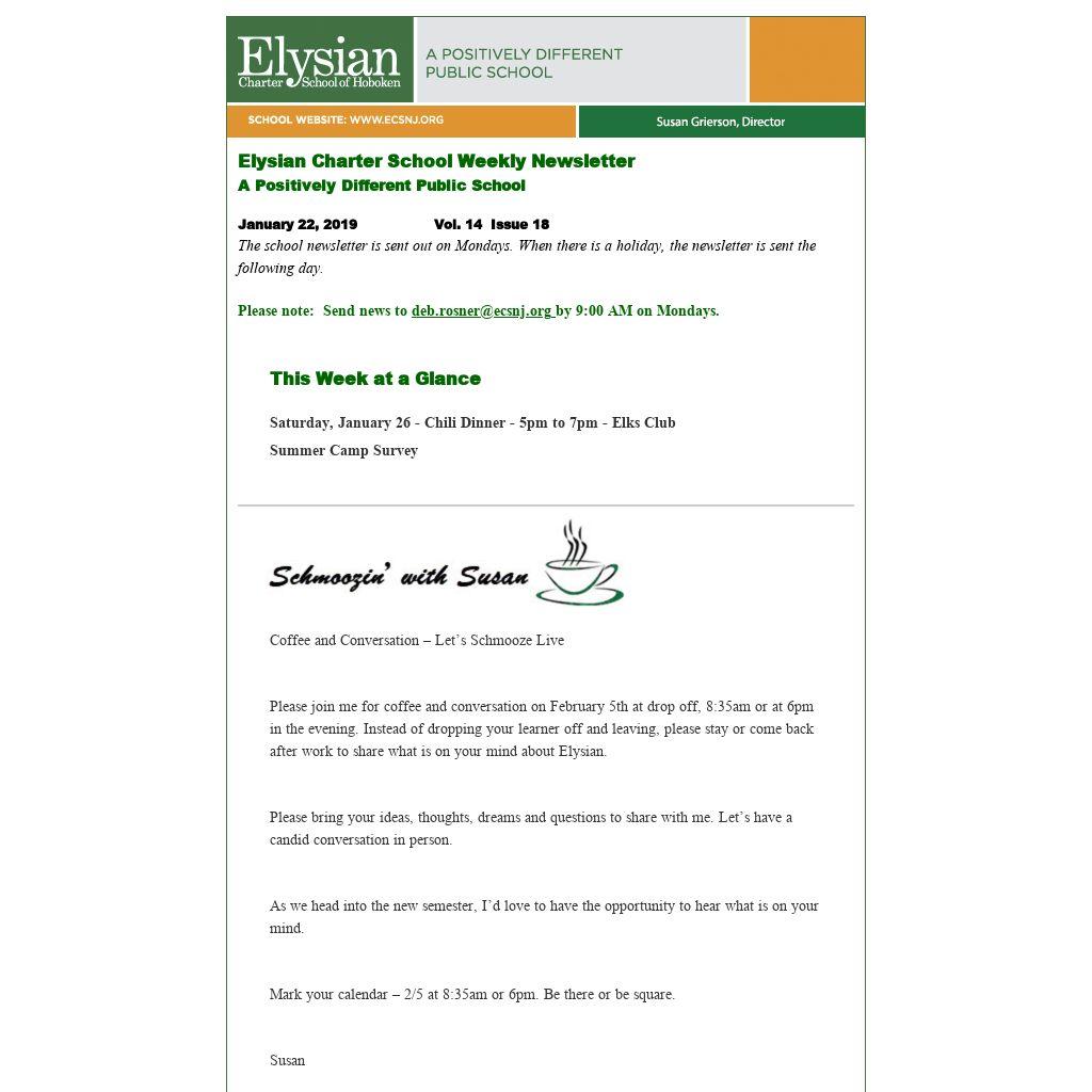 The school newsletter is sent out on Mondays. When there is a holiday, the newsletter is sent the following day.