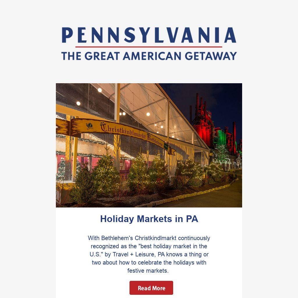 With Bethlehem's Christkindlmarkt continuously recognized as the "best holiday market in the U.S." by Travel + Leisure, PA knows a thing or two about how to celebrate the holidays with festive markets.Â