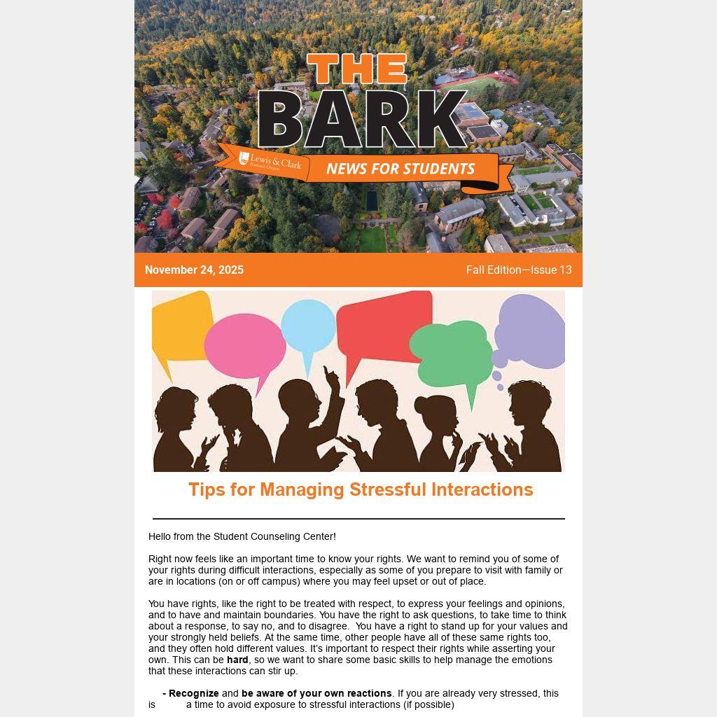 thebark@lclark.edu | go.lclark.edu/bark | 503-768-7110