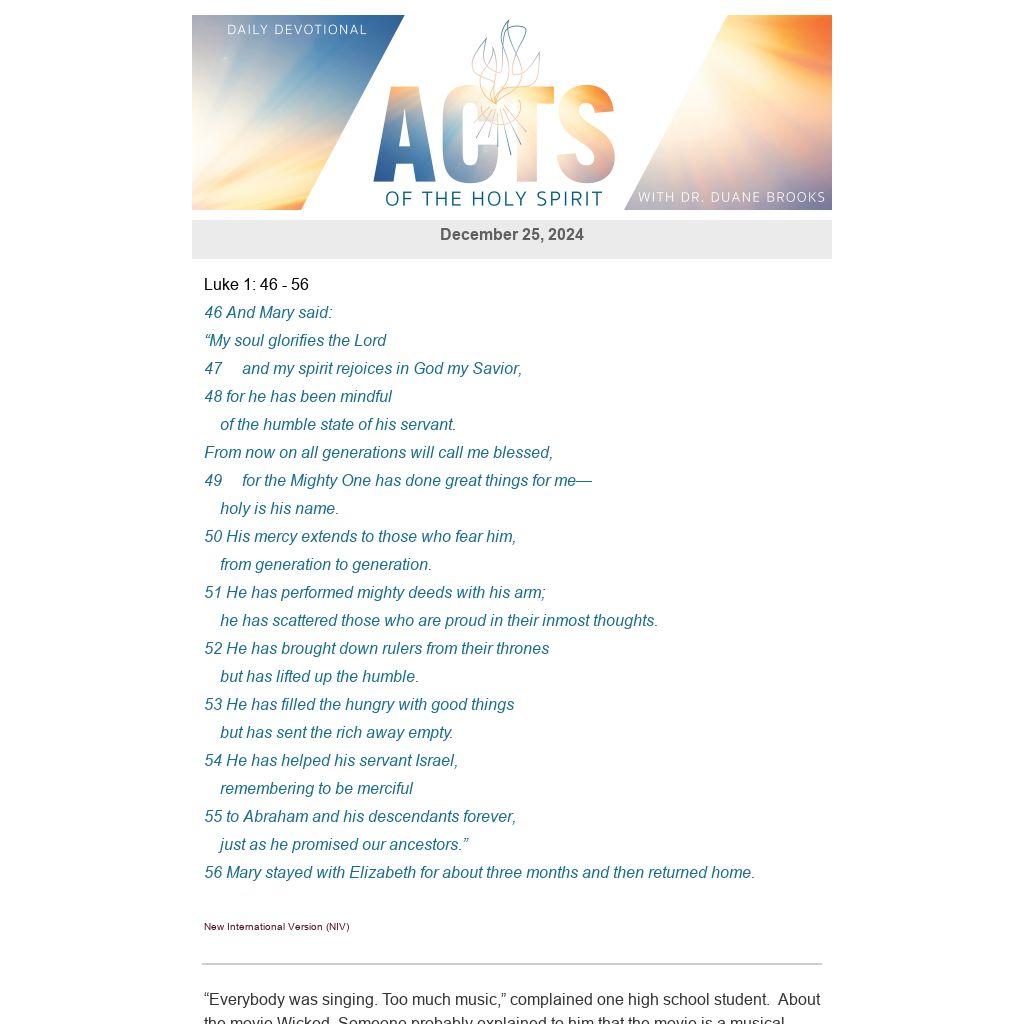 Luke’s story of the incarnation is a musical. Mary spoke or sang the “Magnificat,” beautiful poetic words in response to Elizabeth. What was the theme of her song? God. God was her Lord, her Savior, and the Mighty one who showed her mercy. Notice the counterintuitive way God worked. Humbled by the reality that God had chosen her, she saw Jesus’ birth as confirmation of the great reversal. God exalts the humble and humbles the exalted. He fills the hungry and empties the ones who are full of themselves. Best of all God helps his people and keeps his promises. Jesus’ arrival confirms all of these things.
