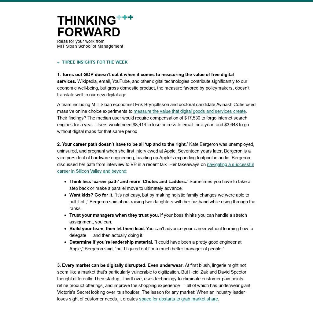 1. Turns out GDP doesn’t cut it when it comes to measuring the value of free digital services. Wikipedia, email, YouTube, and other digital technologies contribute significantly to our economic well-being, but gross domestic product, the measure favored by policymakers, doesn’t translate well to our new digital age.