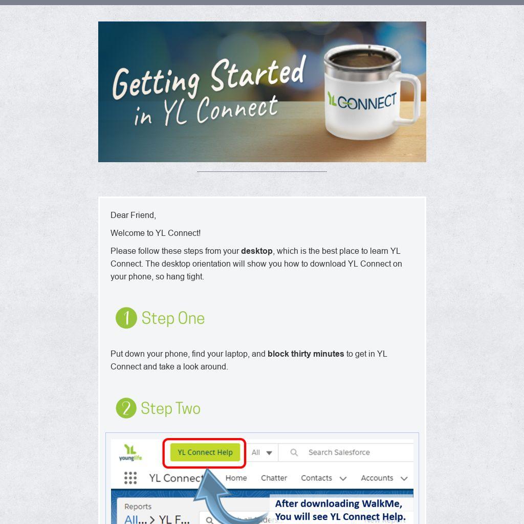 Please follow these steps from your desktop, which is the best place to learn YL Connect. The desktop orientation will show you how to download YL Connect on your phone, so hang tight.