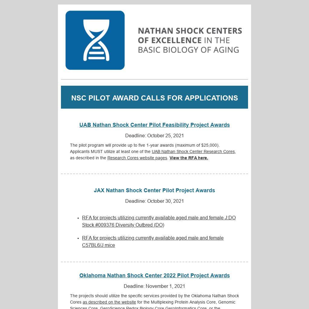 UAB Newsletter - October 2021 The Nathan Shock Center at the University of Alabama at Birmingham shares their comprehensive newsletter for October 2021.