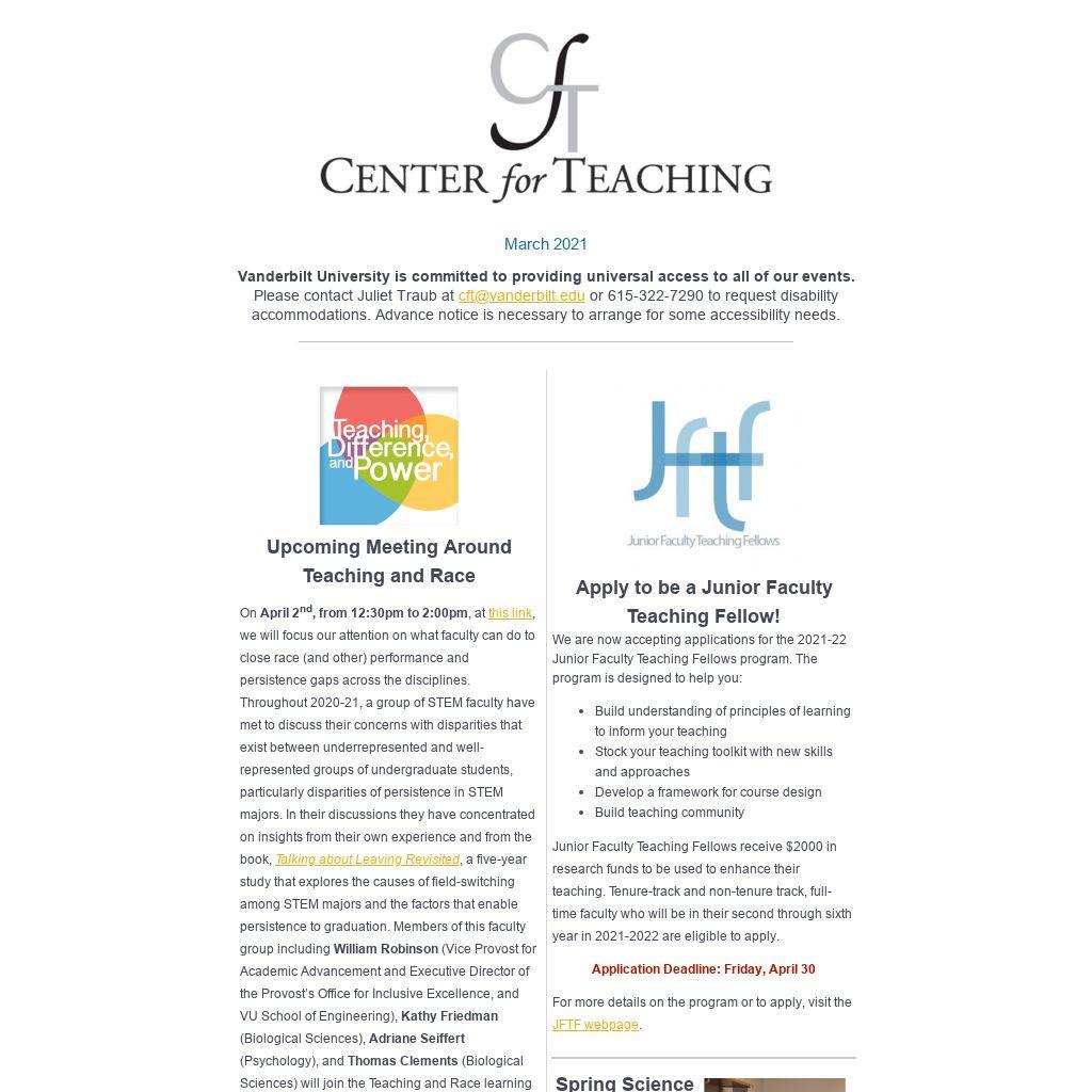 We are now accepting applications for the 2021-22 Junior Faculty Teaching Fellows program. The program is designed to help you: