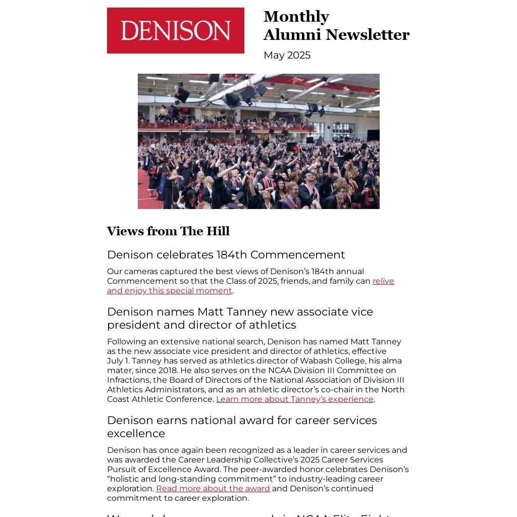 Denison has once again been recognized as a leader in career services and was awarded the Career Leadership Collective’s 2025 Career Services Pursuit of Excellence Award. The peer-awarded honor celebrates Denison’s “holistic and long-standing commitment” to industry-leading career exploration. Read more about the award and Denison’s continued commitment to career exploration.