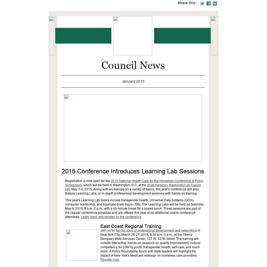 We invite you to nominate yourself, a colleague, or a program participant for a position on the National Health Care for the Homeless Respite Care Providers' Network (RCPN) Steering Committee. The Steering Committee manages and directs the work of the National Health Care for the Homeless Council as it relates to medical respite care. More information and a nomination form can be found on the RCPN webpage. The deadline for nominations is Friday, February 27, 2015.