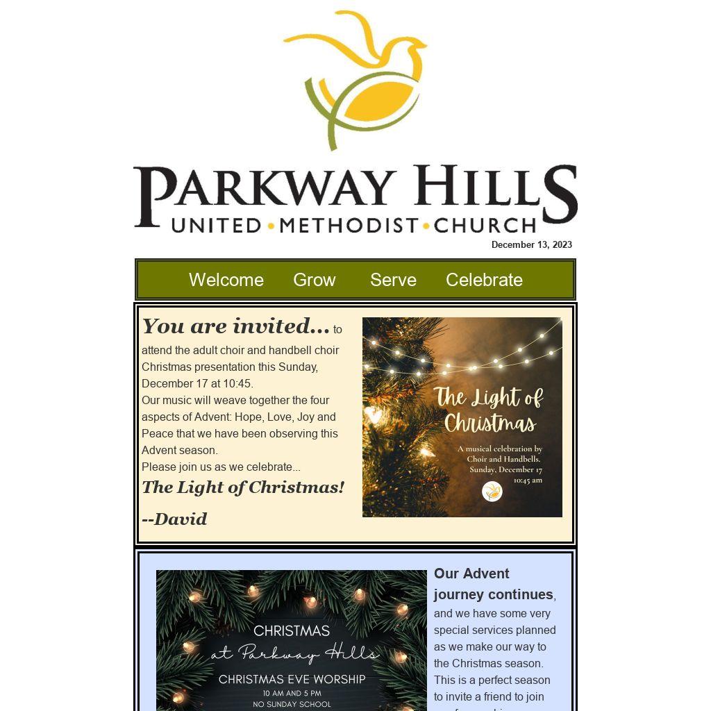 We hope worship at Parkway Hills this Advent season has aided you in reflecting on the gift of Emmanuel, God with us, and we look forward to our continued worship together.