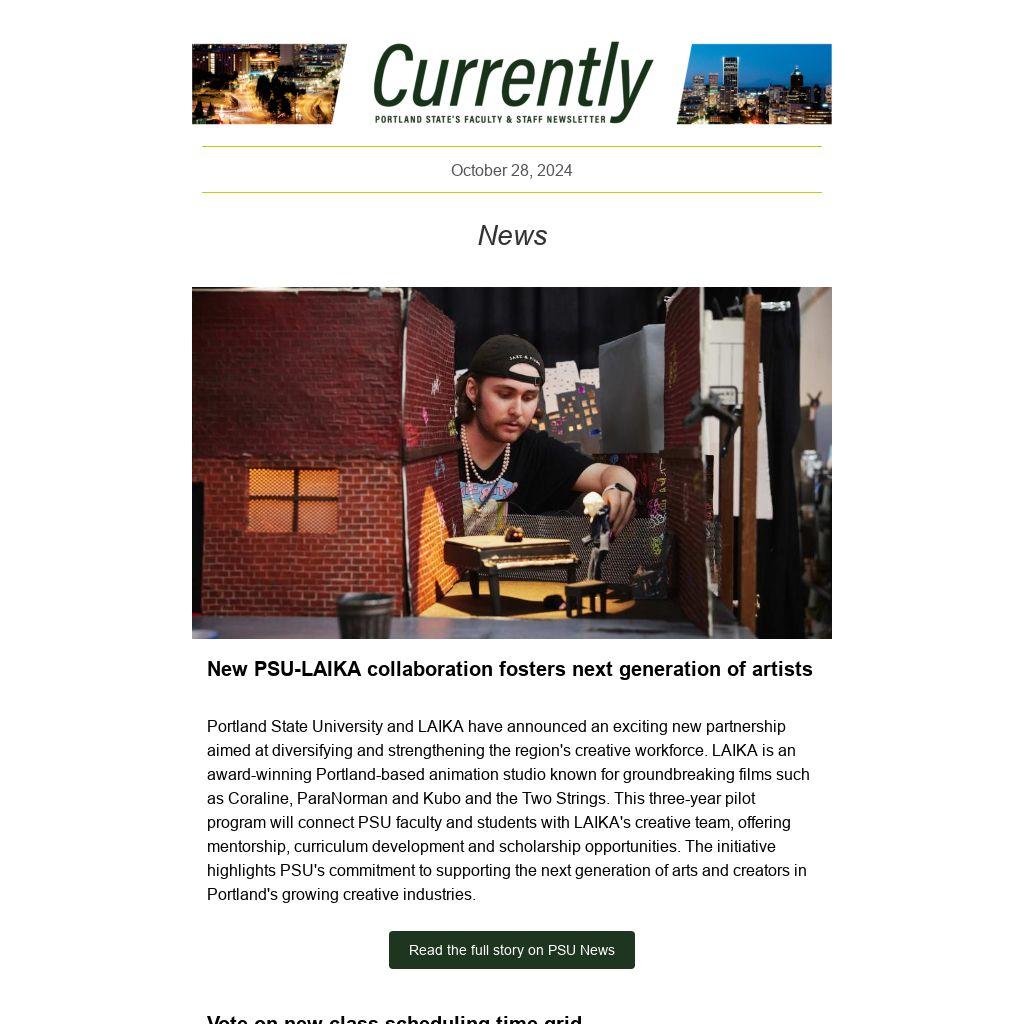 Portland State University and LAIKA have announced an exciting new partnership aimed at diversifying and strengthening the region's creative workforce. LAIKA is an award-winning Portland-based animation studio known for groundbreaking films such as Coraline, ParaNorman and Kubo and the Two Strings. This three-year pilot program will connect PSU faculty and students with LAIKA's creative team, offering mentorship, curriculum development and scholarship opportunities. The initiative highlights PSU's commitment to supporting the next generation of arts and creators in Portland's growing creative industries.