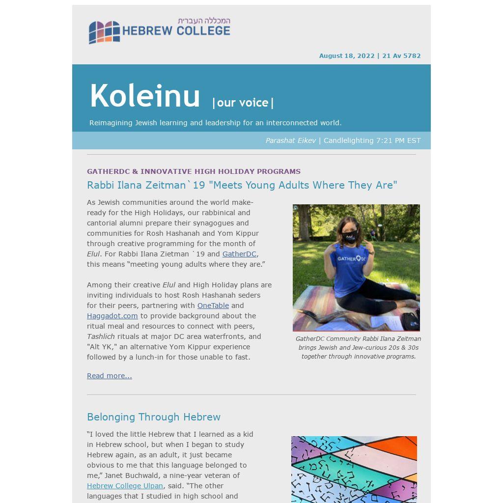 As Jewish communities around the world make-ready for the High Holidays, our rabbinical and cantorial alumni prepare their synagogues and communities for Rosh Hashanah and Yom Kippur through creative programming for the month of Elul. For Rabbi Ilana Zietman `19 and GatherDC, this means “meeting young adults where they are.”